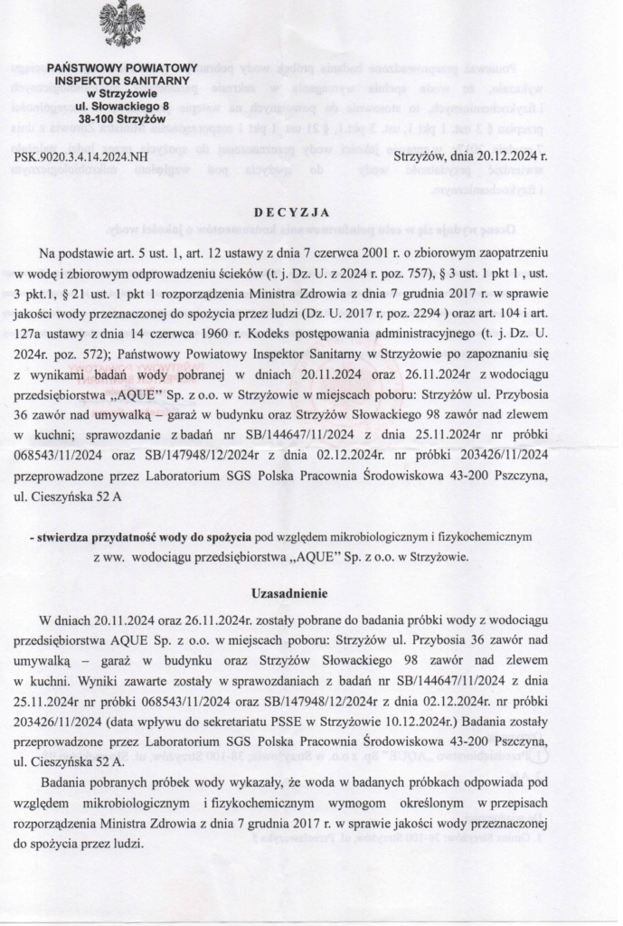 Decyzja PPIS w Strzyżowie